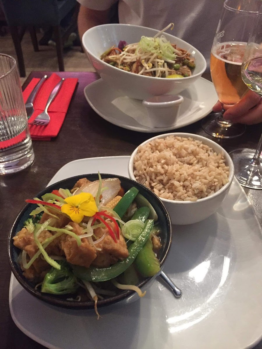 The main courses don’t disappoint either. For curry lovers, the Green Curry with chicken is a rich, fragrant option, while the Massaman curry offers a deeper, more robust flavor profile. Vegetarians will also find plenty of satisfying options like the Stir-Fried Tofu with basil and chili, which packs a punch with its bold spices.